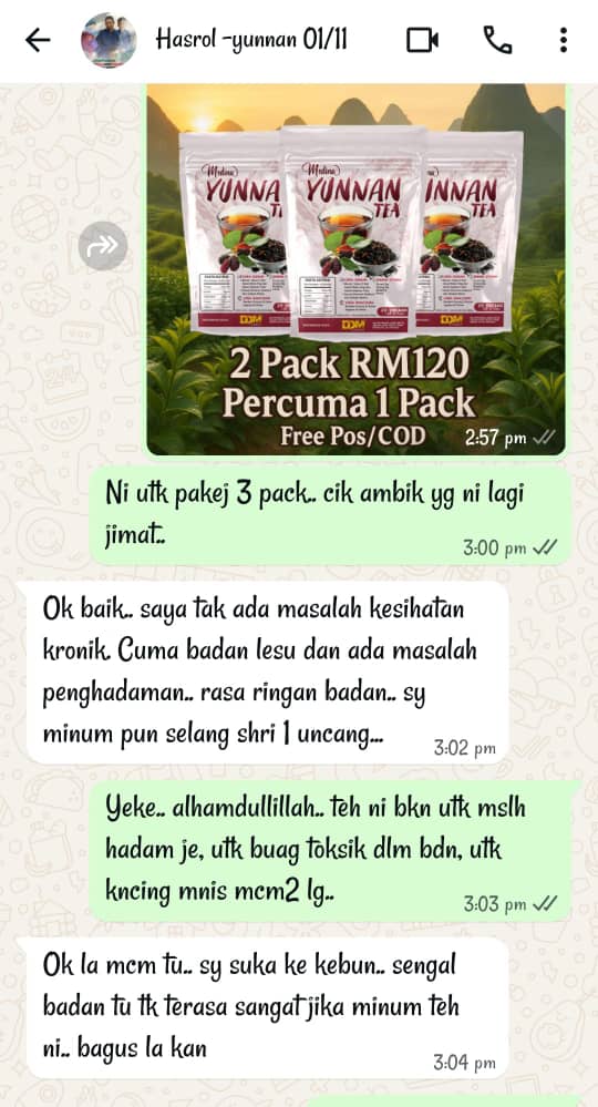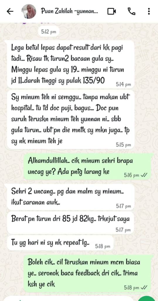 Ratusan pengguna seluruh Malaysia dah alami perubahan positif selepas amalkan Yunnan Tea setiap hari.